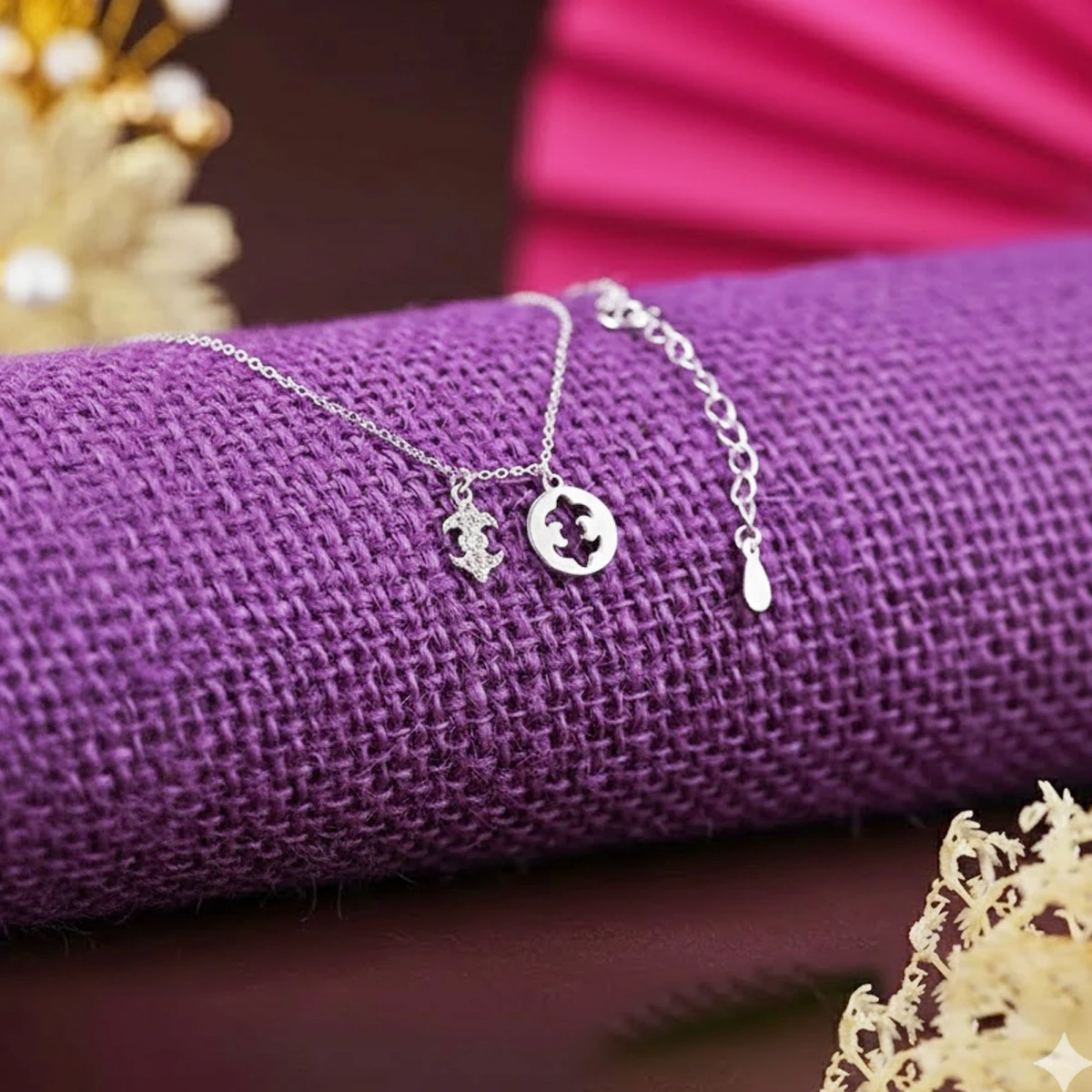 The Rūpāvali necklace features a fine, delicate silver cable chain that exudes timeless elegance. Its simple design beautifully complements any pendant while maintaining a graceful, minimal look. An adjustable clasp extension ensures a comfortable and customizable fit.